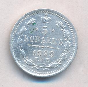 Лицевая сторона — гербовый орел, оборотная —обозначение номинала (5 копеекъ), окруженное венком из лавровой и дубовой ветвей и дата.