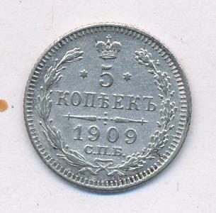 Лицевая сторона — гербовый орел, оборотная —обозначение номинала (5 копеекъ), окруженное венком из лавровой и дубовой ветвей и дата.