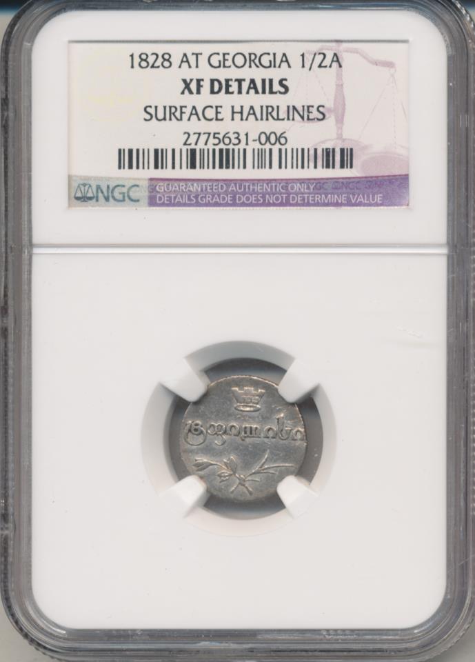 Надпись под короной на лицевой стороне переводится как «Тбилиси». Надпись под цифрой номинала на оборотной стороне серебряных монет - «грузинское серебро», медных монет - «грузинские деньги».