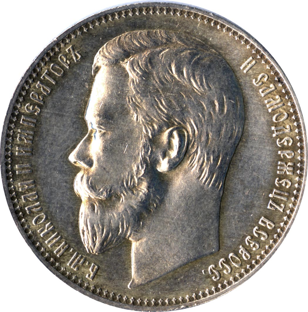 Николай II сохраняет принятый отцом тип, но на банковских монетах его портрет (работы Васютинского) повернут влево (на запад). На оборотной стороне сохраняется тот же герб, вплоть до знака АГ под задней ногой коня.
