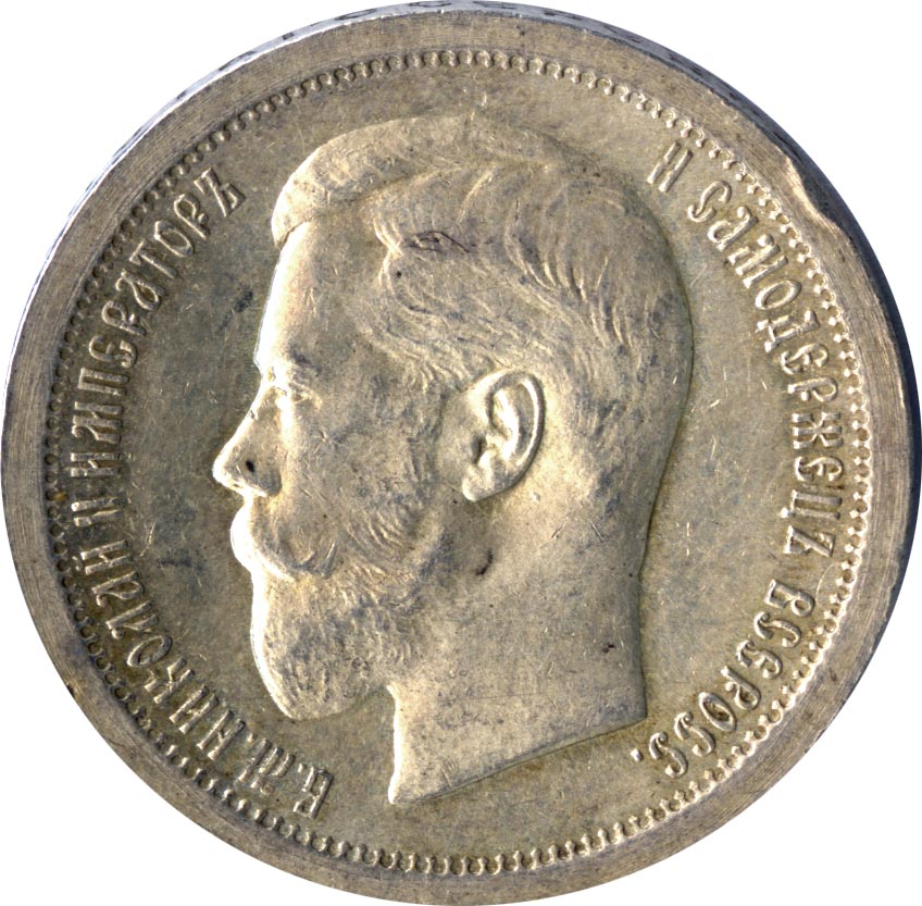 Николай II сохраняет принятый отцом тип, но на банковских монетах его портрет (работы Васютинского) повернут влево (на запад). На оборотной стороне сохраняется тот же герб, вплоть до знака АГ под задней ногой коня.