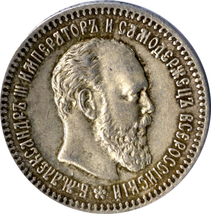 Пробные образцы 50 и 25-копеечной монеты утверждены 4 июля 1886 года. Портрет на монетах не меняет формы до окончания чеканки в 1894 году.