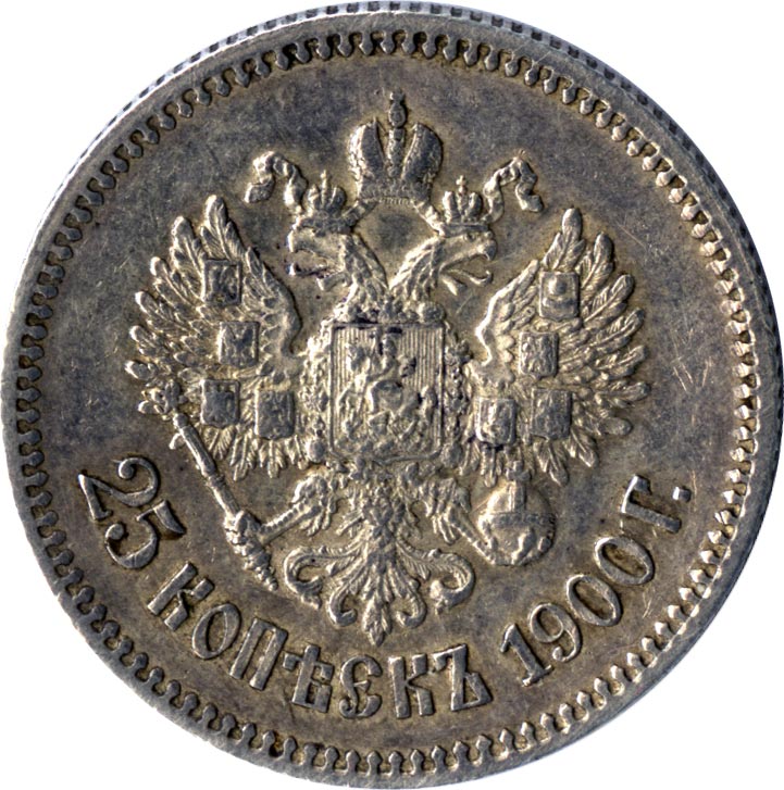 Лицевая сторона — портрет Николая II в круговой надписи «Б.М. НИКОЛАЙ II ИМПЕРАТОРЪ И САМОДЕРЖЕЦЪ ВСЕРОСС», оборотная — двуглавый орел, обозначение номинала (25 копеекъ) и дата.