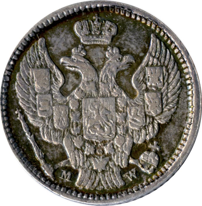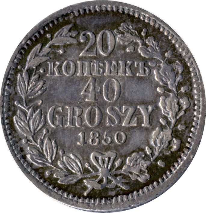 Указом от 21 января 1841 года польская монетная система приводится в единообразие принятой в империи, и в качестве основной ее единицы устанавливается российский рубль. Варшавский двор наряду с чеканкой общеимперских полуимпериала, рубля и полтины, выпускает два низших номинала с двойным русско-польским наименованием.