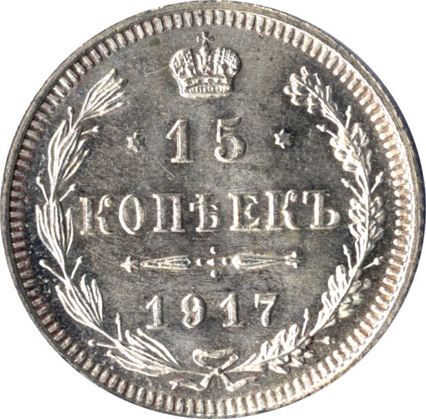 Лицевая сторона — гербовый орел, оборотная —обозначение номинала (15 копеекъ), окруженное венком из лавровой и дубовой ветвей и дата.