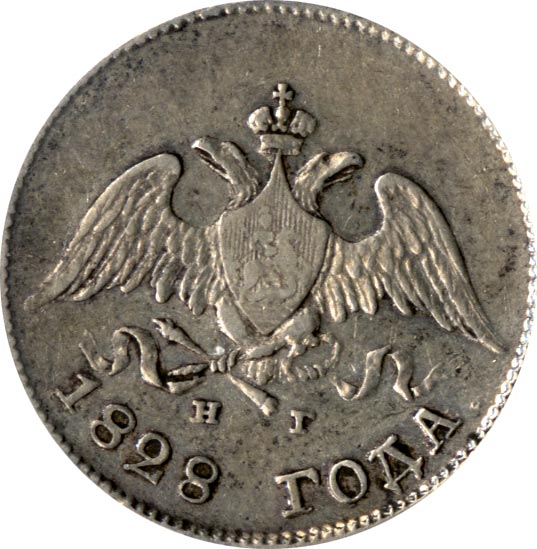 Указом от 1 июля 1826 года Николай I сохраняет вес и пробу золотых и серебряных монет, но приводит к единообразию их внешний вид. На серебряные монеты, вслед за золотыми, помещается новый герб - так называемый «масонский» орел с опущенными крыльями, на груди которого московский герб, в лапах факелы, лавровый венок, ликторский пучок и лента, без корон на головах. См. статью «Масонский орел» на сайте «Конрос».