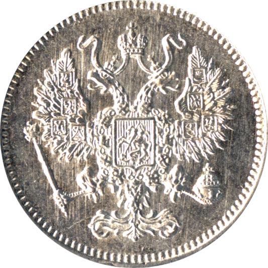 Лицевая сторона — гербовый орел, оборотная —обозначение номинала (10 копеекъ), окруженное венком из лавровой и дубовой ветвей и дата.
