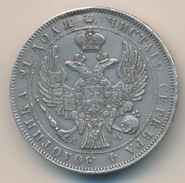 В январе 1830 года Николай I дает министру финансов Е. Ф. Канкрину устное указание «о сделании на золотых и серебряных монетах орла как на платиновых». На новом гербе крылья орла подняты, на них размещены шесть местных гербов — казанский, астраханский, сибирский, польский, херсонесский и финляндский. На груди орла — московский герб, на головах — короны. С 1832 года заодно с орлом изменяются и композиции обеих сторон монет: на лицевой стороне содержание чистого серебра в монете теперь обозначает круговая надпись, слово МОНЕТА на оборотной подчеркивает нарицательную стоимость, отличая полновесное денежное средство от рубля ассигнациями (нужно помнить, что доставшаяся Николаю в наследство от трех прежних правлений масса обесцененных бумажных денег является острой экономической проблемой. Правительство Николая удерживает объем ассигнаций строго на одном уровне, не прибегая к дополнительным эмиссиям; курс рубля ассигнациями колеблется вокруг 35 копеек).