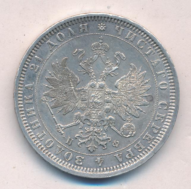 Лицевая сторона — гербовый орел и надпись «ЧИСТОГО СЕРЕБРА 4 ЗОЛОТНИКА 21 ДОЛЯ», оборотная — обозначение номинала «РУБЛЬ», окруженное венком из лавровой и дубовой ветвей и дата.
