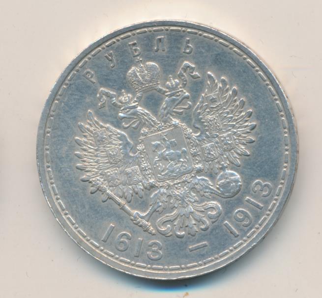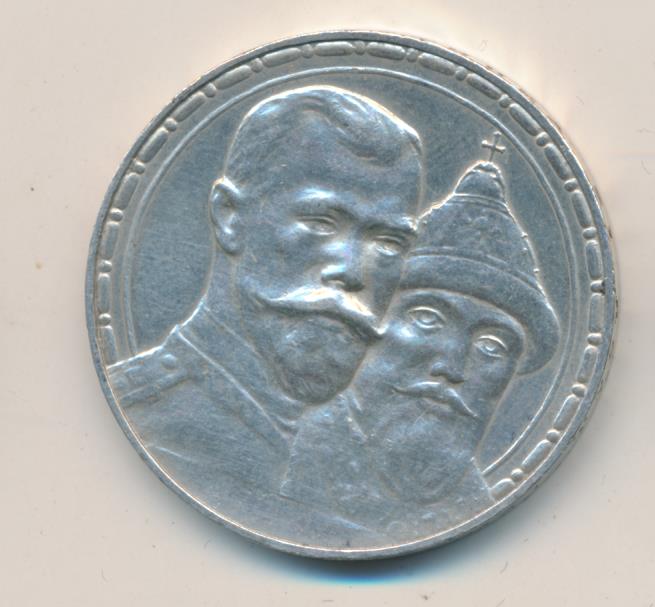 К 300-летию царствования Дома Романовых выпустили и юбилейный рубль, отчеканенный грандиозным тиражом почти в полтора миллиона экземпляров. На лицевой стороне монеты разместили портрет императора Николая II в военной форме, за спиной которого виден основатель династии, царь Михаил Романов в царском одеянии и в шапке Мономаха.
