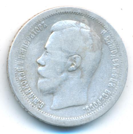 Лицевая сторона — портрет Николая II в круговой надписи «Б.М. НИКОЛАЙ II ИМПЕРАТОРЪ И САМОДЕРЖЕЦЪ ВСЕРОСС», оборотная — двуглавый орел, обозначение номинала (50 копеекъ) и дата.