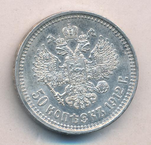 Лицевая сторона — портрет Николая II в круговой надписи «Б.М. НИКОЛАЙ II ИМПЕРАТОРЪ И САМОДЕРЖЕЦЪ ВСЕРОСС», оборотная — двуглавый орел, обозначение номинала (50 копеекъ) и дата.