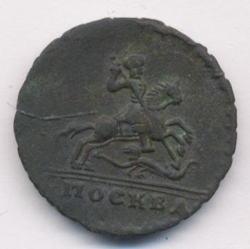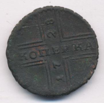 Петр II указом от 21 февраля 1728 года добавляет к полушке и пятаку 40-рублевой стопы копейку и устанавливает для нее сходное с пятаком оформление.