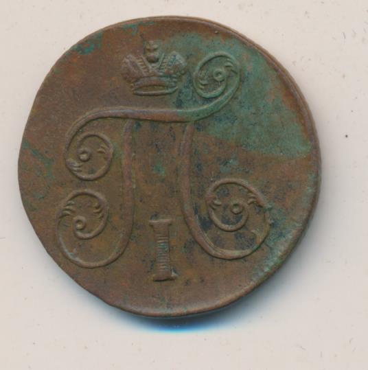 Лицевая сторона — вензель Павла I под короной, оборотная — номинал (1 копейка) и дата. Нормативный вес — 10,24 грамма, гурт — шнур.