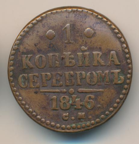 На новых монетах равенство серебряному курсу указано прямо в номинале: «1 КОПЕЙКА СЕРЕБРОМ». Указ об их выпуске следует 6 сентября 1840 года («О новой медной монете на серебро 16-рублевого в пуде достоинства»). Массовая чеканка началось за год до этого на Екатеринбургском (знак ЕМ) и Сузунском (знак СМ) дворах. В качестве временной меры в 1840-1843 годах к ним подключается Ижорский завод (знак СПМ). С 1844 года после «значительного скопления медной монеты в народном обращении» в Екатеринбурге производство прекращается, а в Сузуне сокращается.
