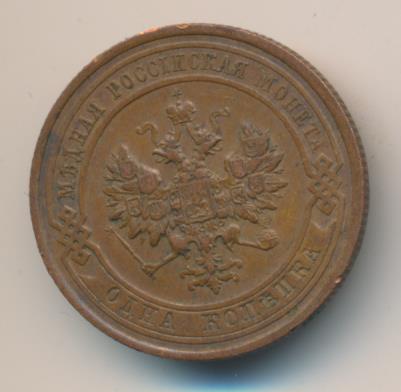Лицевая сторона — двуглавый орел, надпись МЕДНАЯ РОССIЙСКАЯ МОНЕТА и обозначение номинала (одна копейка); оборотная — обозначение номинала (1 копейка) в бусовом ободке и дата. Нормативный вес — 3,28 грамма, гурт рубчатый.