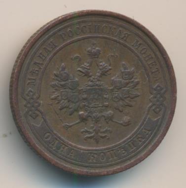 Лицевая сторона — двуглавый орел, надпись МЕДНАЯ РОССIЙСКАЯ МОНЕТА и обозначение номинала (одна копейка); оборотная — обозначение номинала (1 копейка) в бусовом ободке и дата. Нормативный вес — 3,28 грамма, гурт рубчатый.