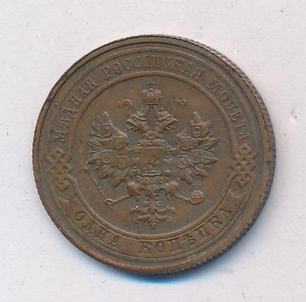 Лицевая сторона — двуглавый орел, надпись МЕДНАЯ РОССIЙСКАЯ МОНЕТА и обозначение номинала (одна копейка); оборотная — обозначение номинала (1 копейка) в бусовом ободке и дата. Нормативный вес — 3,28 грамма, гурт рубчатый.