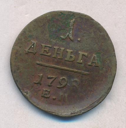 Лицевая сторона — вензель Павла I под короной, оборотная — номинал (1 деньга) и дата. Нормативный вес — 5,12 грамма, гурт — шнур.