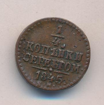 Лицевая сторона — вензель Николая I в бусовом ободке, оборотная — надпись «1/4 КОПЕЙКИ СЕРЕБРОМ» и дата. Нормативный вес — 2,56 грамма, гурт гладкий.