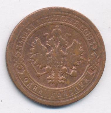 Лицевая сторона — двуглавый орел, надпись МЕДНАЯ РОССIЙСКАЯ МОНЕТА и обозначение номинала (одна копейка); оборотная — обозначение номинала (1 копейка) в бусовом ободке и дата. Нормативный вес — 3,28 грамма, гурт рубчатый.