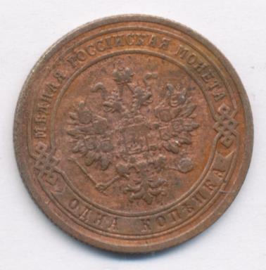 Лицевая сторона — двуглавый орел, надпись МЕДНАЯ РОССIЙСКАЯ МОНЕТА и обозначение номинала (одна копейка); оборотная — обозначение номинала (1 копейка) в бусовом ободке и дата. Нормативный вес — 3,28 грамма, гурт рубчатый.