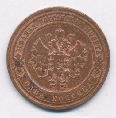 Лицевая сторона — двуглавый орел, надпись МЕДНАЯ РОССIЙСКАЯ МОНЕТА и обозначение номинала (одна копейка); оборотная — обозначение номинала (1 копейка) в бусовом ободке и дата. Нормативный вес — 3,28 грамма, гурт рубчатый.
