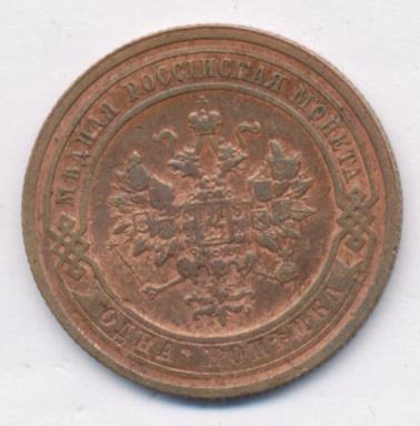 Лицевая сторона — двуглавый орел, надпись МЕДНАЯ РОССIЙСКАЯ МОНЕТА и обозначение номинала (одна копейка); оборотная — обозначение номинала (1 копейка) в бусовом ободке и дата. Нормативный вес — 3,28 грамма, гурт рубчатый.