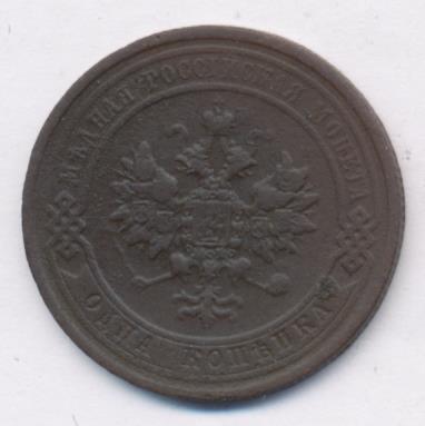 Лицевая сторона — двуглавый орел, надпись МЕДНАЯ РОССIЙСКАЯ МОНЕТА и обозначение номинала (одна копейка); оборотная — обозначение номинала (1 копейка) в бусовом ободке и дата. Нормативный вес — 3,28 грамма, гурт рубчатый.