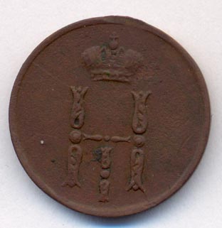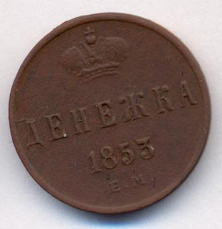 Лицевая сторона — вензель Николая I, оборотная — обозначение номинала (денежка) и дата. Нормативный вес — 2,56 грамма, гурт гладкий.