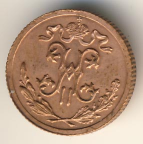 Указом от 21 марта 1867 года Александр II утверждает 50-рублевую стопу для медных монет. Новые монеты получают усложненное оформление, дополнительным отличием от прежних выпусков служит рубчатый гурт (чеканка ведется без предварительного гурчения кружков в неразъемном рубчатом кольце).