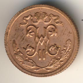 Лицевая сторона — вензель Александра II в венке из лавровой и дубовой ветвей; оборотная — обозначение номинала (1/2 копейки) и дата. Нормативный вес — 1,64 грамма, гурт рубчатый.