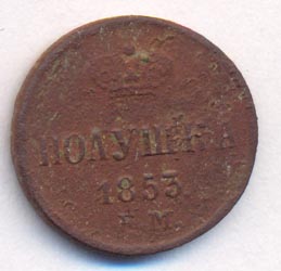Лицевая сторона — вензель Николая I, оборотная — обозначение номинала (полушка) и дата. Нормативный вес — 1,28 грамма, гурт гладкий.