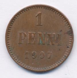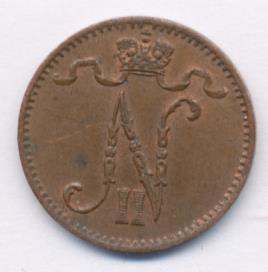 Лицевая сторона — вензель Александра II, оборотная — номинал (1 PENNIA) и дата. Нормативный вес — 1,28 грамма, гурт гладкий.