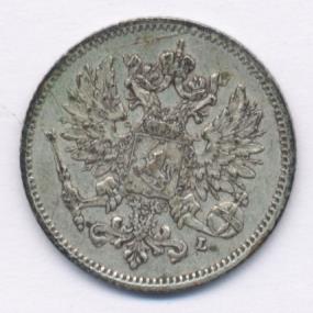 Лицевая сторона — российский двуглавый орел с гербом Великого княжества Финляндского на груди, оборотная — номинал и дата в венке из дубовых листьев. Проба — 750, нормативный вес — 1,27 грамма, гурт рубчатый.