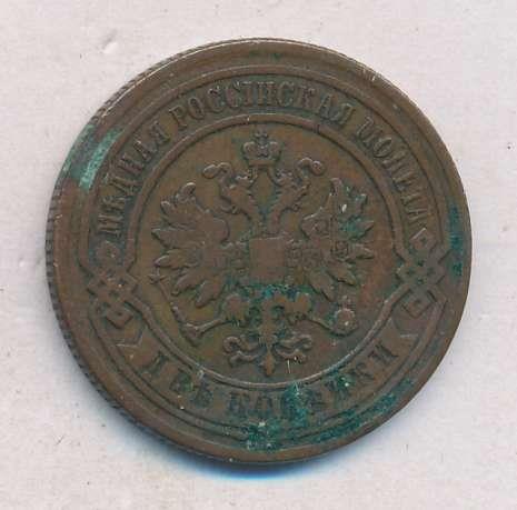 Лицевая сторона — двуглавый орел, надпись МЕДНАЯ РОССIЙСКАЯ МОНЕТА и обозначение номинала (две копейки); оборотная — обозначение номинала (2 копейки) в бусовом ободке и дата. Нормативный вес — 6,55 грамма, гурт рубчатый.