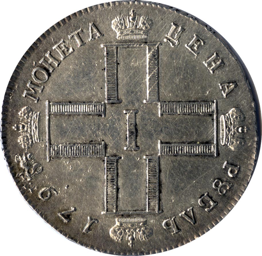 Лицевая сторона - крестообразная монограмма из четырех П и I в центре, надпись «МОНЕТА ЦЕНА РУБЛЬ» и дата, оборотная - надпись «НЕ НАМ, НЕ НАМ, А ИМЯНИ ТВОЕМУ» в картуше. Проба — 868, нормативный вес — 20,73 грамма, гурт — надпись «восемдесятъ третеи съ одною третью пробы».