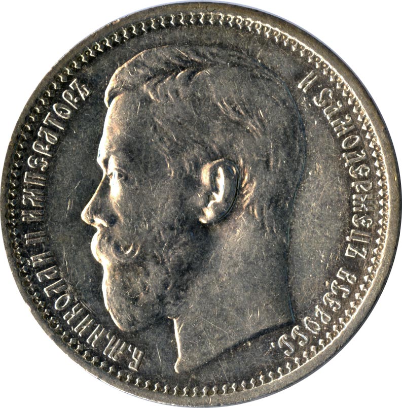Николай II сохраняет принятый отцом тип, но на банковских монетах его портрет (работы Васютинского) повернут влево (на запад). На оборотной стороне сохраняется тот же герб, вплоть до знака АГ под задней ногой коня.