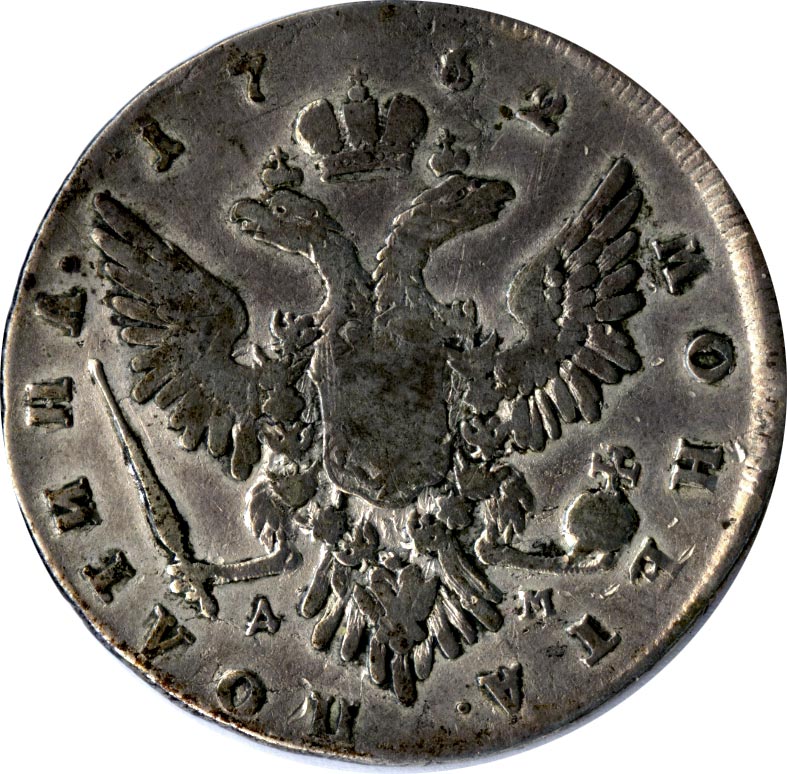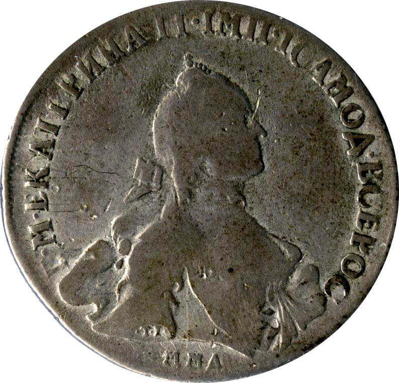 Лицевая сторона — портрет императрицы и надпись «Б М ЕКАТЕРИНА II IМП I САМОД ВСЕРОС», оборотная — двуглавый орел и надпись «МОНЕТА ПОЛТИНА» и дата. Проба — 750, нормативный вес — 12 граммов, гурт — шнур.