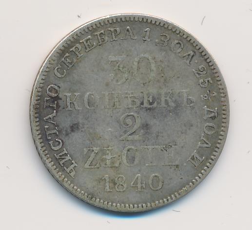 30 копеек — 2 злотых 1834-1841 годов