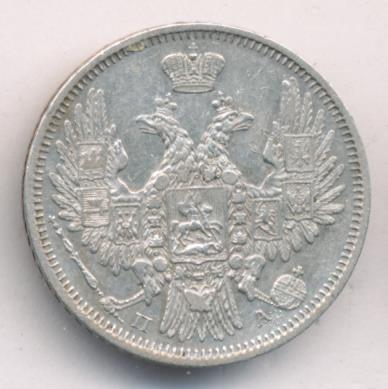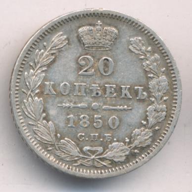 Лицевая сторона — новый гербовый орел с поднятыми крыльями, оборотная —обозначение номинала (20 копеекъ), окруженное венком из лавровой и дубовой ветвей и дата. Проба — 868, нормативный вес — 4,15 грамма.