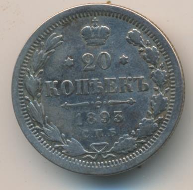 Лицевая сторона — гербовый орел, оборотная —обозначение номинала (20 копеекъ), окруженное венком из лавровой и дубовой ветвей и дата.