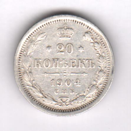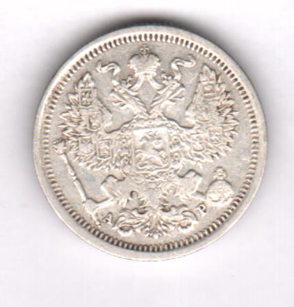 Лицевая сторона — гербовый орел, оборотная —обозначение номинала (20 копеекъ), окруженное венком из лавровой и дубовой ветвей и дата.
