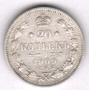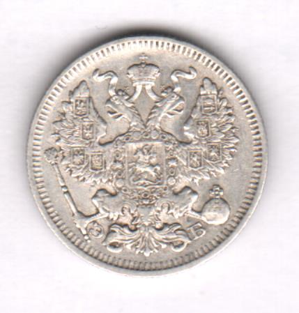 Лицевая сторона — гербовый орел, оборотная —обозначение номинала (20 копеекъ), окруженное венком из лавровой и дубовой ветвей и дата.