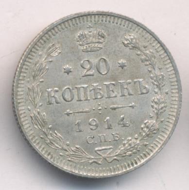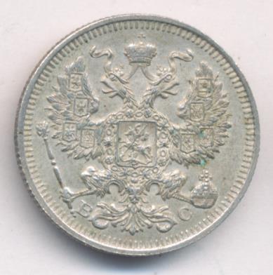 Лицевая сторона — гербовый орел, оборотная —обозначение номинала (20 копеекъ), окруженное венком из лавровой и дубовой ветвей и дата.