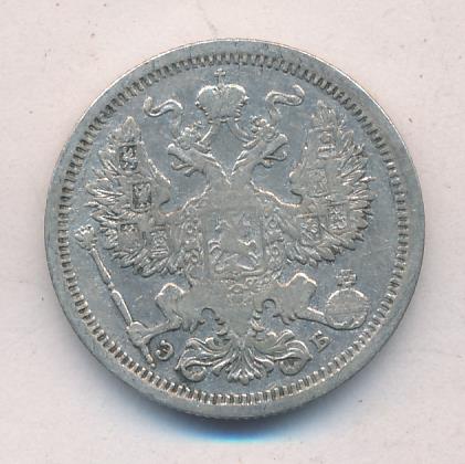 Лицевая сторона — гербовый орел, оборотная —обозначение номинала (20 копеекъ), окруженное венком из лавровой и дубовой ветвей и дата.