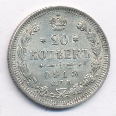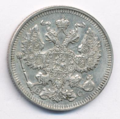 Лицевая сторона — гербовый орел, оборотная —обозначение номинала (20 копеекъ), окруженное венком из лавровой и дубовой ветвей и дата.