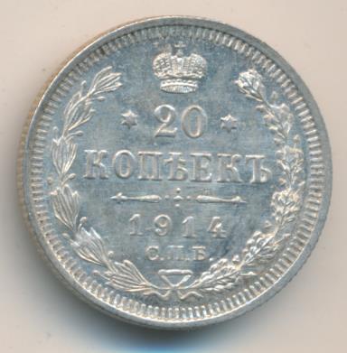 Лицевая сторона — гербовый орел, оборотная —обозначение номинала (20 копеекъ), окруженное венком из лавровой и дубовой ветвей и дата.