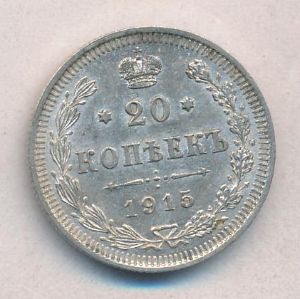 Лицевая сторона — гербовый орел, оборотная —обозначение номинала (20 копеекъ), окруженное венком из лавровой и дубовой ветвей и дата.