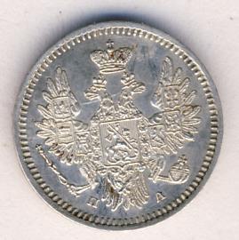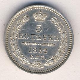 Лицевая сторона — новый гербовый орел с поднятыми крыльями, оборотная —обозначение номинала (5 копеекъ), окруженное венком из лавровой и дубовой ветвей и дата. Проба — 868, нормативный вес — 1,04 грамма.